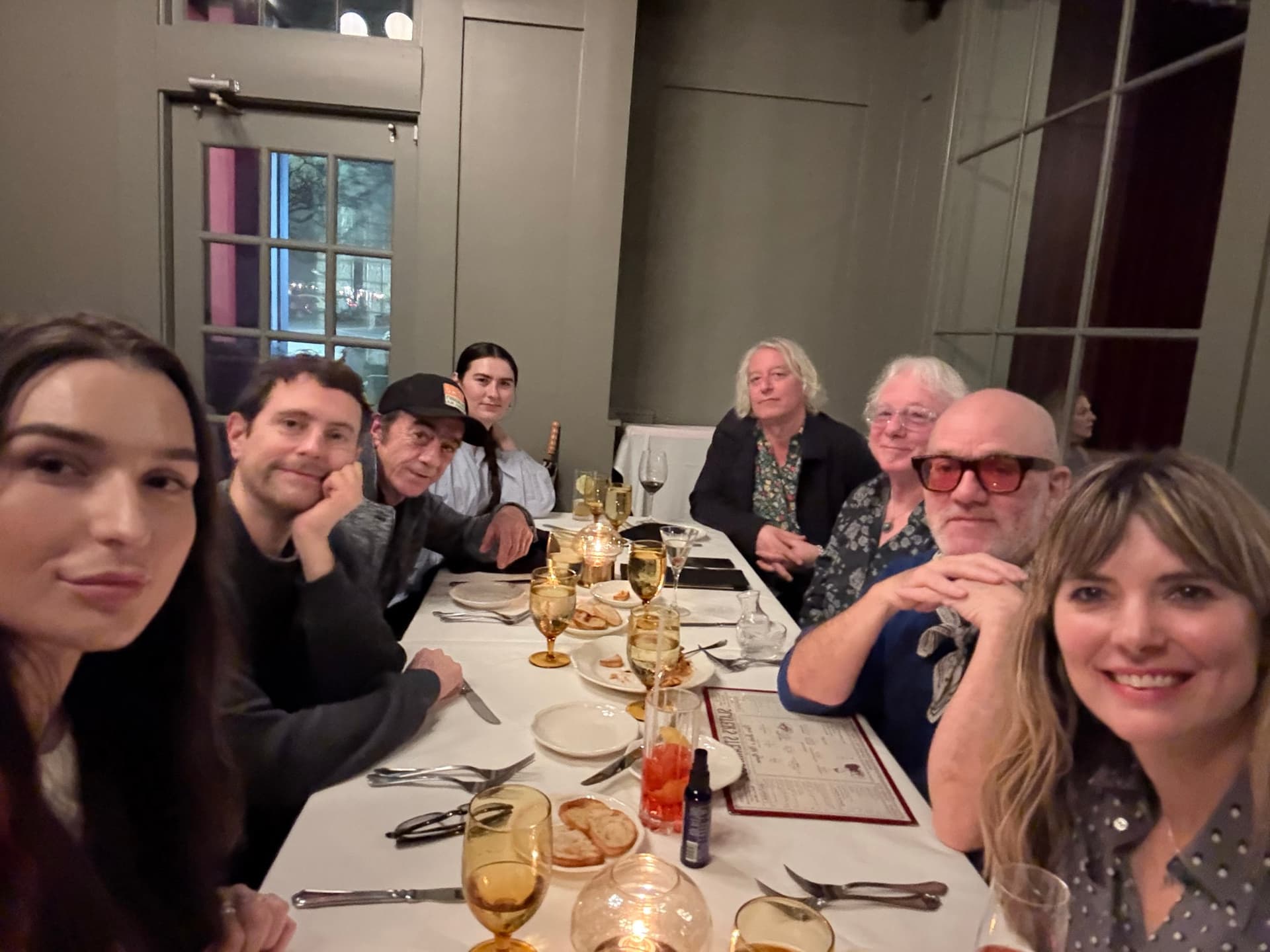The dark-haired woman in the front is Zelda, and Zoe is sitting across from her dad. The blonde woman on the right-hand side is Mike’s wife Jasmine. Someone else said that the man next to Zelda is The Mister. (I saw the picture earlier on Facebook.)
